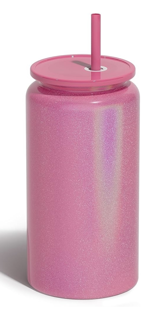 16oz Shimmering GLASS Tumbler STAINLESS STEEL - Shiny Dark Pink