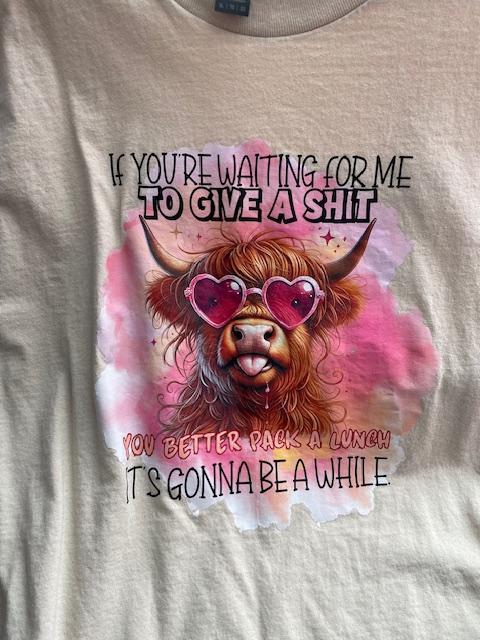 Gildan - XL Adult Short Sleeve T-Shirt - If you are waiting for me Cow on Ash