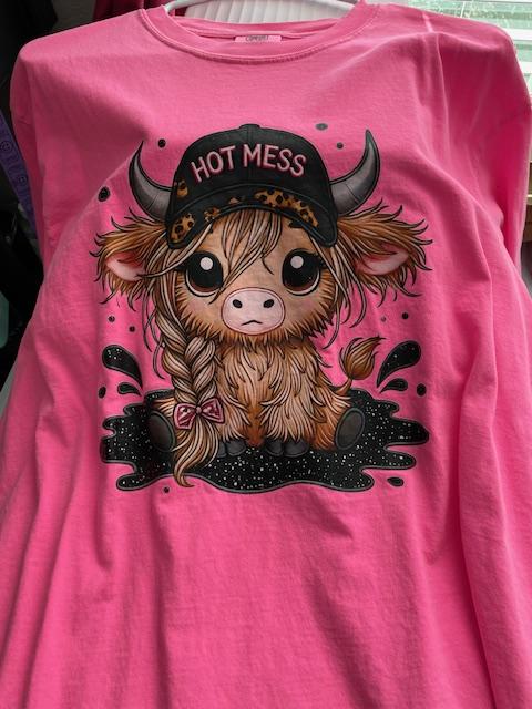 Comfort Colors - XL Adult Short Sleeve T-Shirt - Hot Mess cow on bright pink