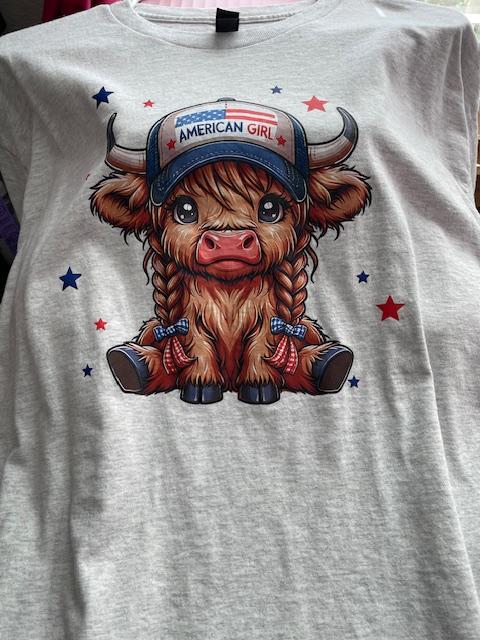 Gildan - XL Adult Short Sleeve T-Shirt - American Girl cow on Ash