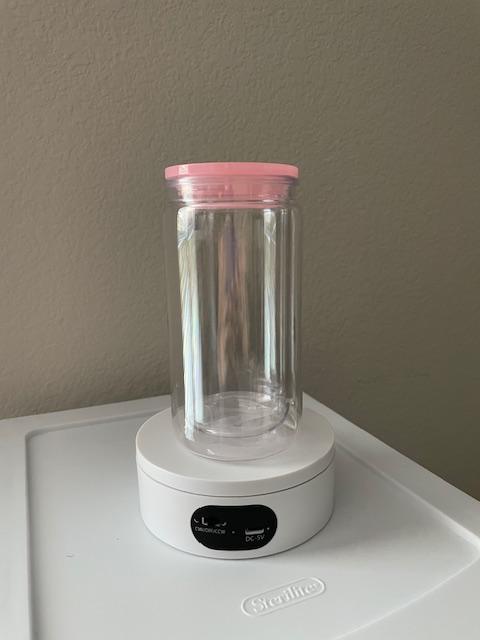 16 oz PLASTIC Snowglobe Tumbler - LIGHT PINK